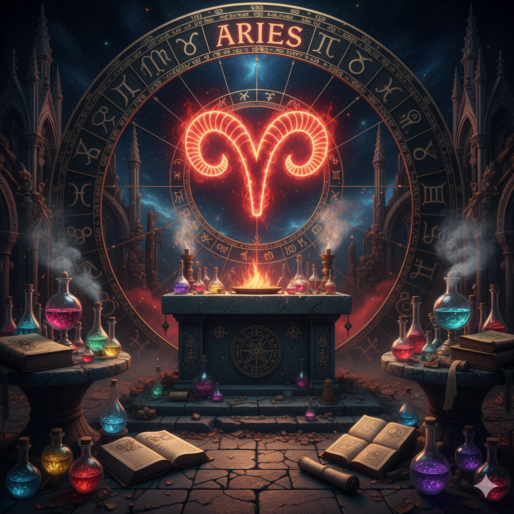 Aquí, en el primer umbral de la Rueda Sagrada, comienza la Gran Obra. El Zodíaco Alquímico de Aries no es un destino, sino un estallido: el impulso primigenio, la chispa que salta del pedernal del cosmos para encender el Fuego Secreto en el alma del peregrino. Esta es la morada del arquetipo del Comienzo, la voluntad pura que se atreve a manifestarse desde el vacío.